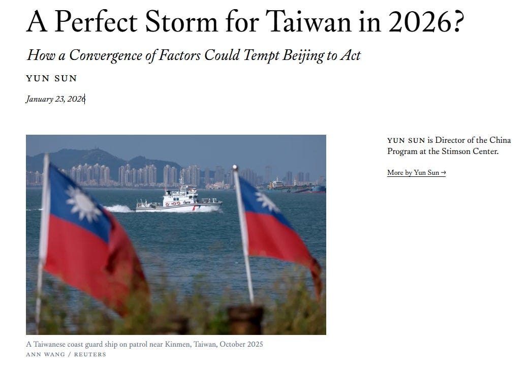 从这一点出发,我个人对“2026年台海冲突风险显著上升”的判断持更为保留的态度。在我看来,北京在2026年采取军事行动的可能性,整体上要低于孙韵文章中所暗示的程度。