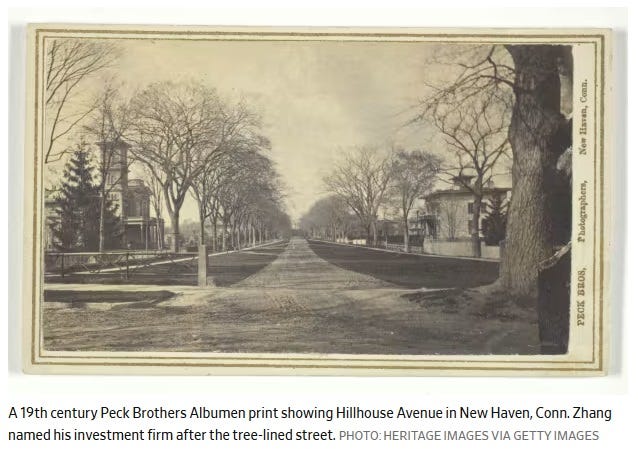 (图片说明:Hillhouse Avenue(高瓴大道)19世纪的照片。在耶魯大大学求学时,張磊经常在这条街道上行走和思考。这条街道也被美國小說家馬克·吐溫称为“全美最美小路”。)