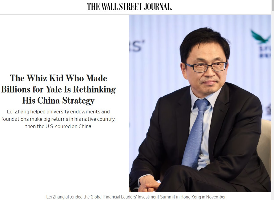 编者按:2024年11月29日,《华尔街日报》发表题为“为耶鲁赚了大钱的天才小鬼正在重新思考他的中国策略”(The Whiz Kid Who Made Billions for Yale Is Rethinking His China Strategy)。本站特约撰稿人乔桥受该文启发,写了这篇文章。乔桥在文章结尾写道,“虽然张磊头上“手到成金”的光环正在失去光彩,但这并不表明他自己的才智、聪慧和决断有了什么的变化。张磊是幸运的弄潮儿,但在海啸之中,他本事再大也无法幸免。张磊和他的公司的起伏其实折射了中美关系这个宏观变局对正常的经济行为的影响,也反映了一个国家决策的正确与否会对这个国家带来多大的变化。于是,跟不少人一样,张磊有了第二次“出走”。这次出走的不是仅仅他本人,还有他的公司和多年来他的公司的成功传递给中国、美国和世界的信息。”