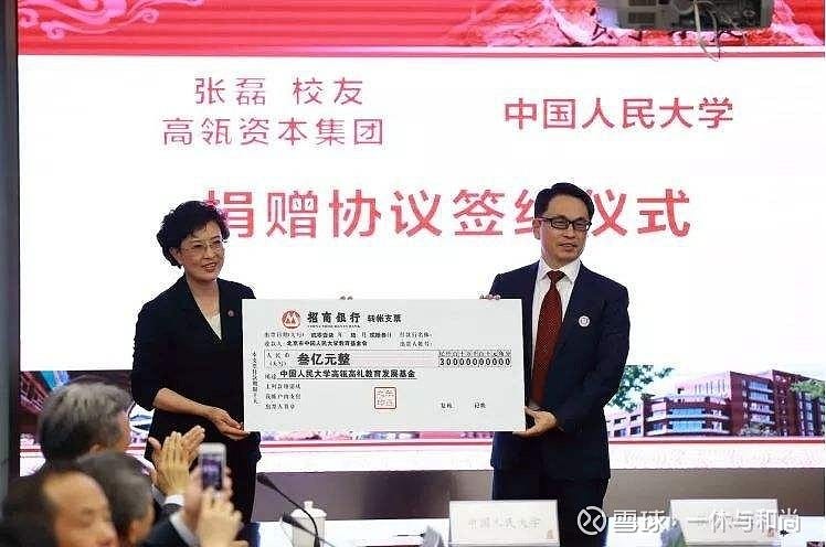 (图片说明:2012年,张磊给母校捐款3亿人民币。)